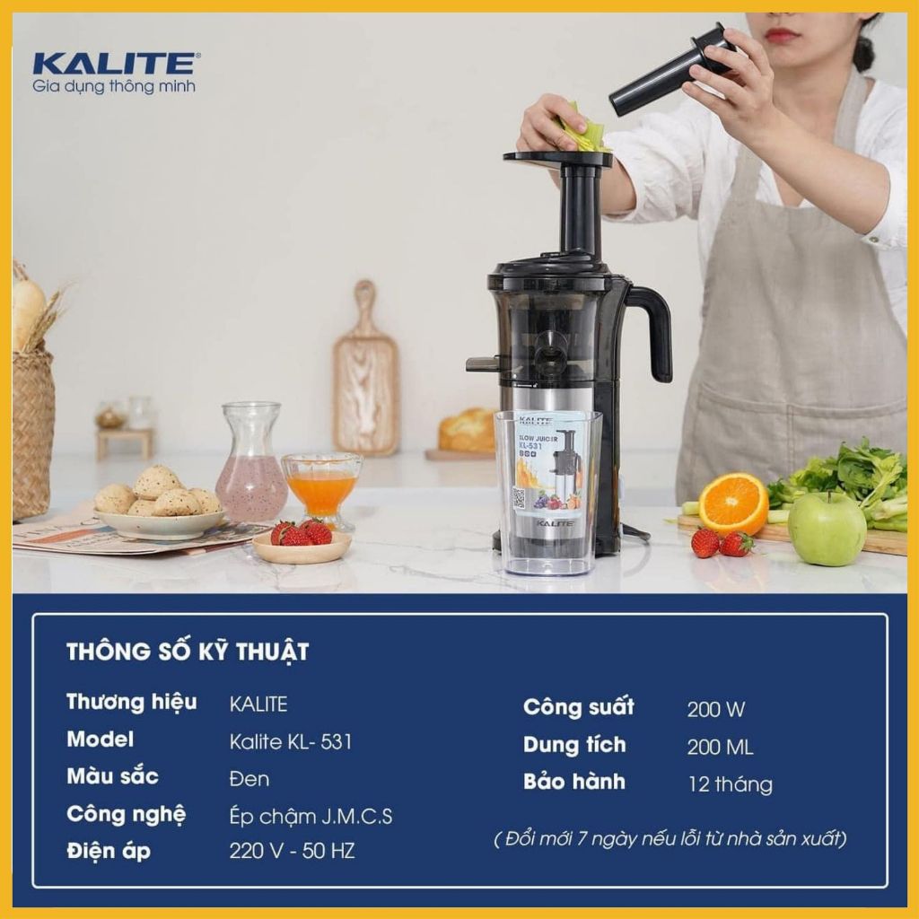 Máy ép chậm, máy ép trái cây chậm Kalite KL531 công suất 200w thuộc dòng máy ép chậm mini ✅Thông số kỹ thuật :