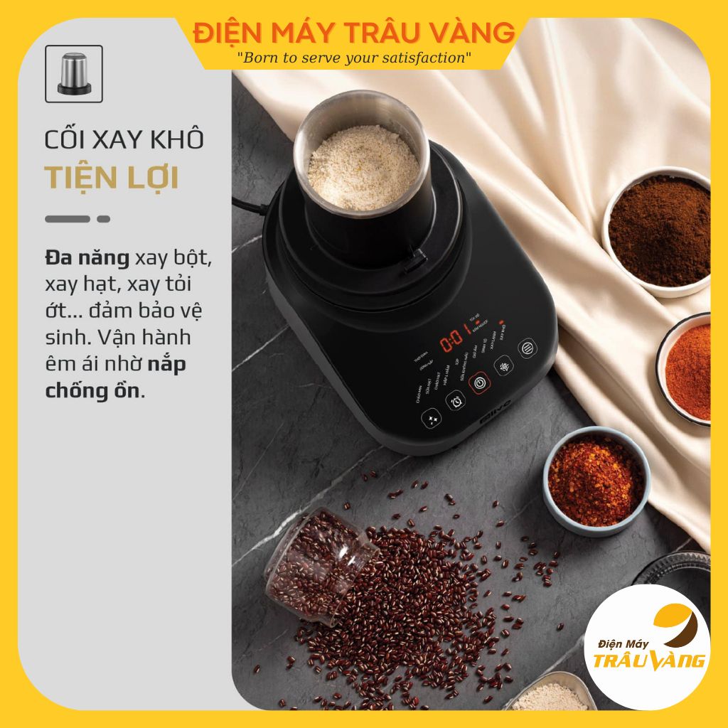 -Cối xay khô: sẽ chuyên dùng để xay những đồ khô như xay bột, xay hạt, xay tỏi ớt… vận hành êm ái nhờ nắp chống ồn.